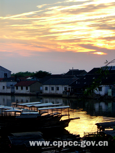 《水乡晚霞》