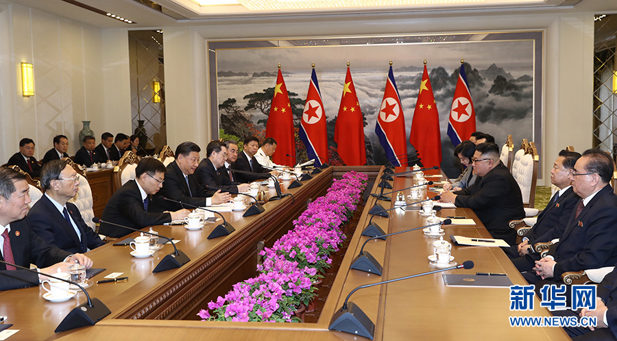 金正恩说,今年是朝中建交70周年和新中国成立70周年的双喜之年,朝方愿同中方一道,举行广泛而热烈的庆祝活动。当前,朝鲜党和人民正全力贯彻落实新战略路线,朝方愿多学习中国经验做法,积极致力于发展经济、改善民生。