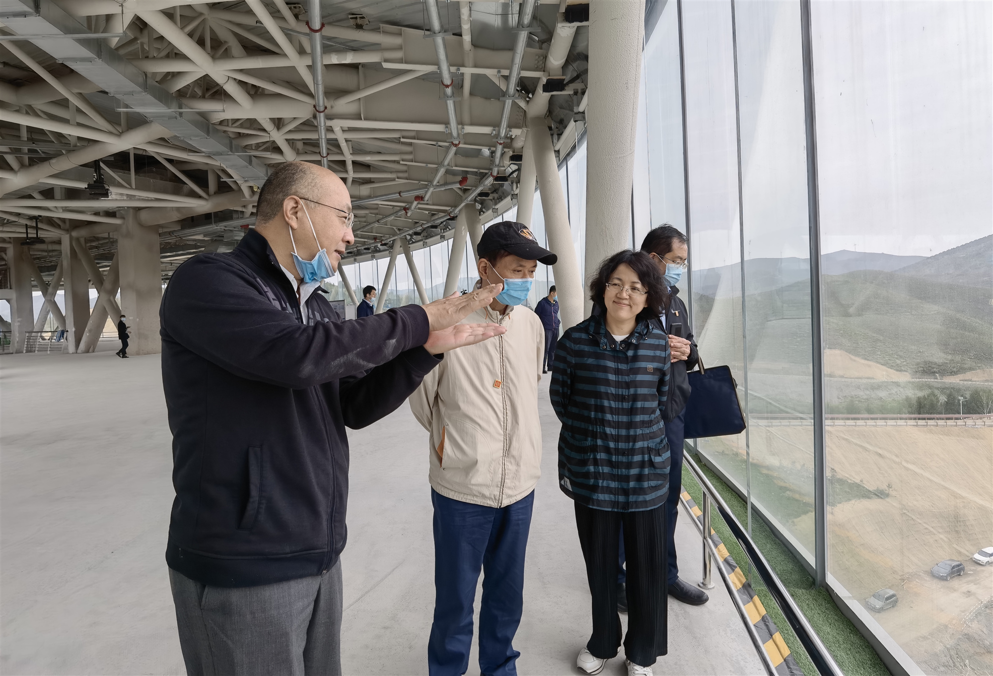 6月8日上午,视察团来到位于张家口赛区的国家跳台滑雪中心,看到了这个被称为“雪如意”的美丽建筑。