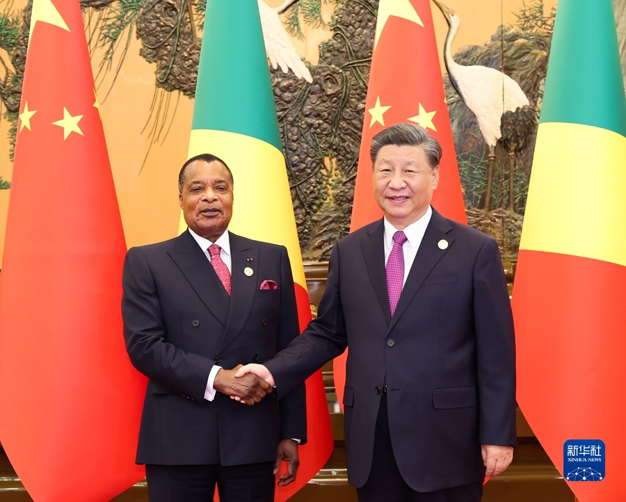 新华社北京10月19日电(记者许可、林苗苗)10月19日下午,国家主席习近平在人民大会堂会见来华出席第三届“一带一路”国际合作高峰论坛的刚果(布)总统萨苏。