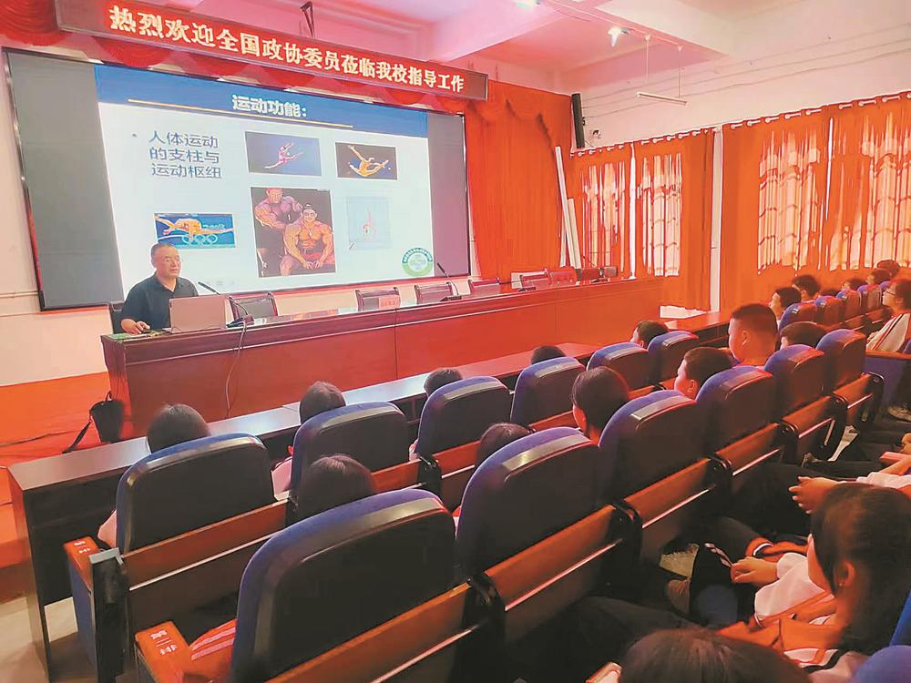 2023年9月底,贵州省湄潭县协育中学近200名师生现场聆听全国政协委员厉彦虎的讲座。“长期低头是个坏动作,会影响脊柱健康,进而带来其他健康问题,比如焦虑就有可能跟脊柱变形相关。”“坐着不动9个小时就会压坏椎间盘。”“窝着坐是对脊柱压力最大的坐姿。”听着讲述,学生们不自觉地抬头、挺胸、坐直。讲座结束后,厉彦虎给学生们播放了一段方便课间保护脊柱的健康操视频,学生们纷纷跟着做了起来……