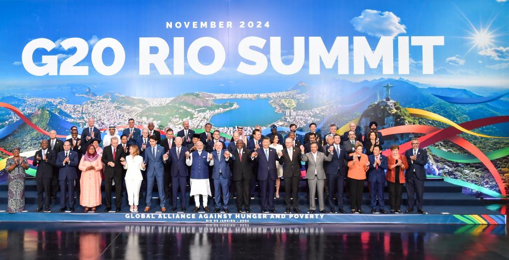 当地时间11月19日中午,国家主席习近平在里约热内卢出席二十国集团领导人第十九次峰会闭幕会议。这是闭幕会议后,习近平同其他与会领导人合影。新华社记者李涛摄