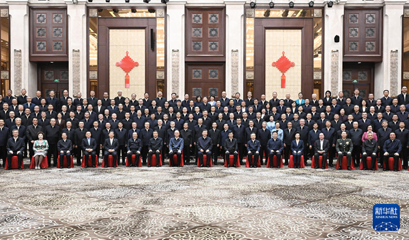 9月23日下午,中共中央总书记、国家主席、中央军委主席习近平在乌鲁木齐亲切接见新疆各族各界代表,并同大家合影留念。新华社记者 燕雁 摄