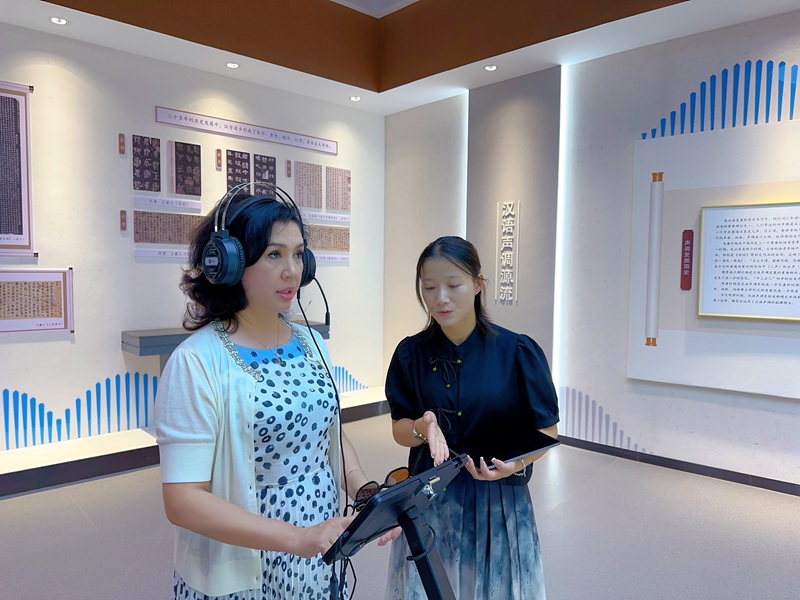 木亚赛尔·托乎提(左)赴和田墨玉县调研,期间参观铸牢中华民族共同体意识展览馆。(图片由受访者提供)