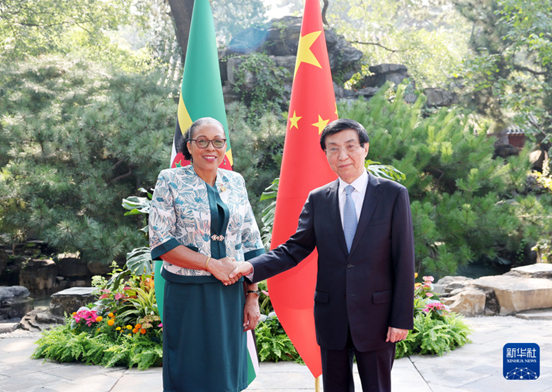 王沪宁表示,多米尼克是中国在加勒比地区的好朋友、好伙伴。今天上午,习近平主席同总统女士举行会见,就中多关系发展达成重要共识。中方愿同多方一道,以总统女士此次访问为契机,继续拓展各领域合作,高质量共建“一带一路”,推动中多友好关系不断深入发展。