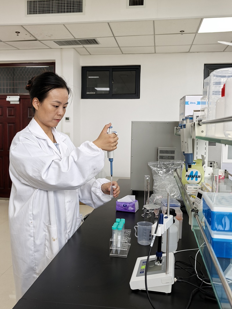 林云就城市地下水保护相关课题进行实验分析。 (图片由受访者提供)
