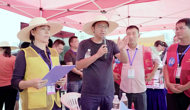 徐海波(左二)在黄山市高素质农民粮食作物栽培工技能大赛上作点评。 (图片由受访者提供)