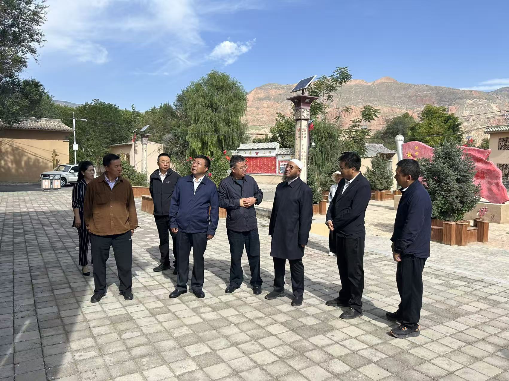 马跃祥(右三)在青海省海东市循化撒拉族自治县红光上村调研老街区保护工作。