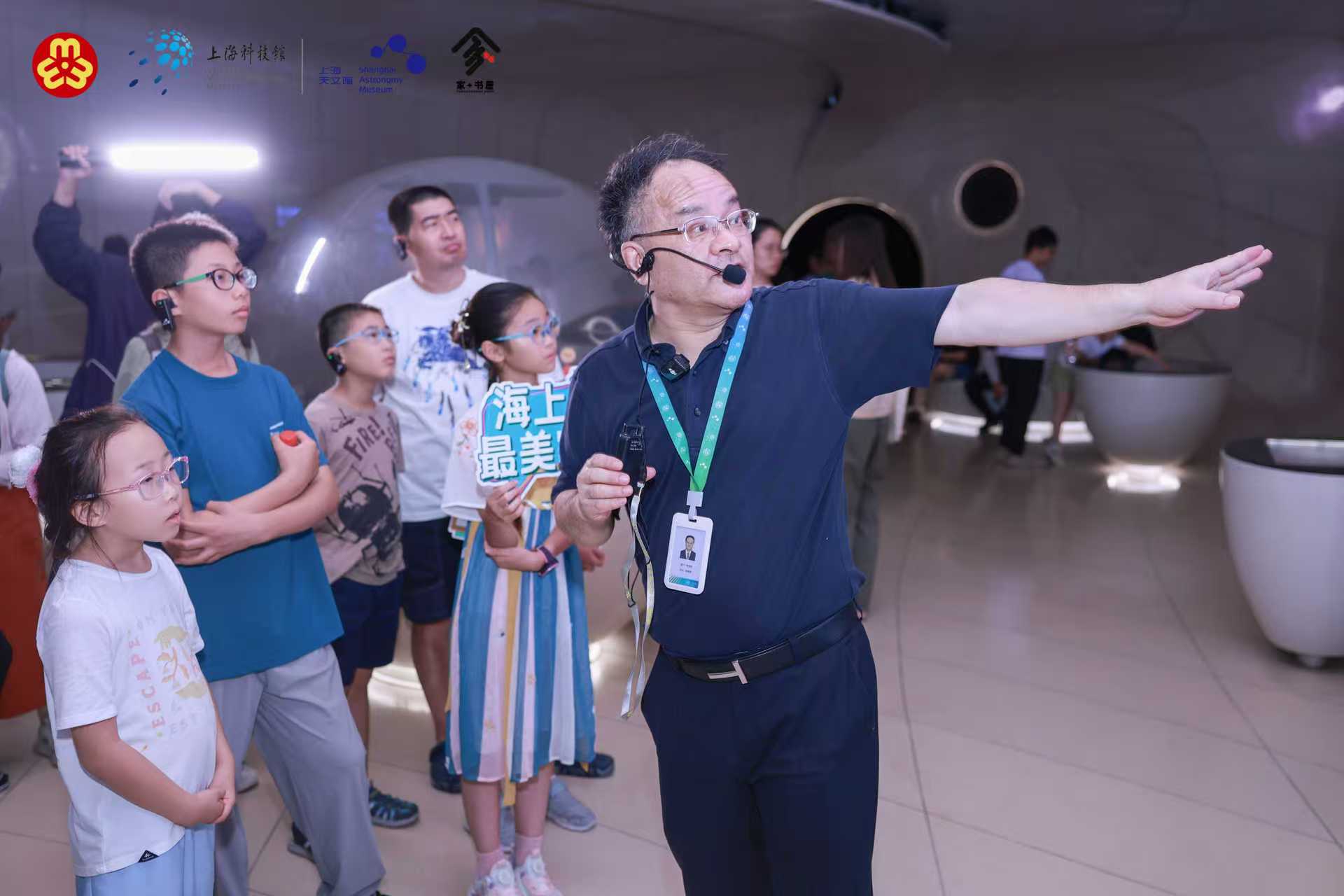 倪闽景(右)在上海天文馆给孩子们做讲解。(图片由受访者提供)