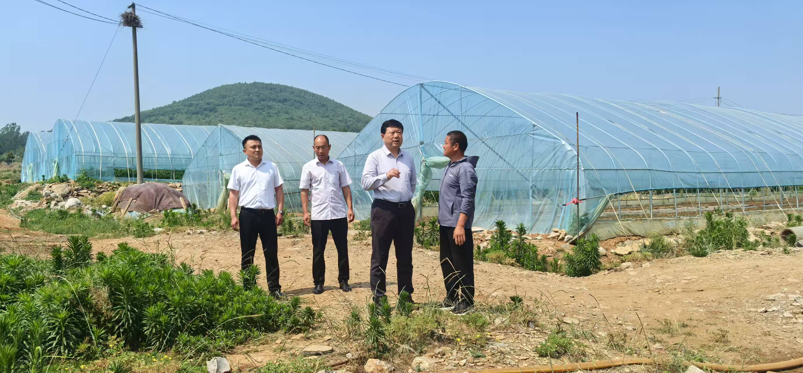 2025年6月30日,王传喜(右二)在山东省临沂市兰陵县下村乡大荒村现场调研夏汛工作。