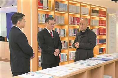 祁志峰(右一)在西安市中级人民法院就法治文化建设工作开展情况进行实地视察调研。