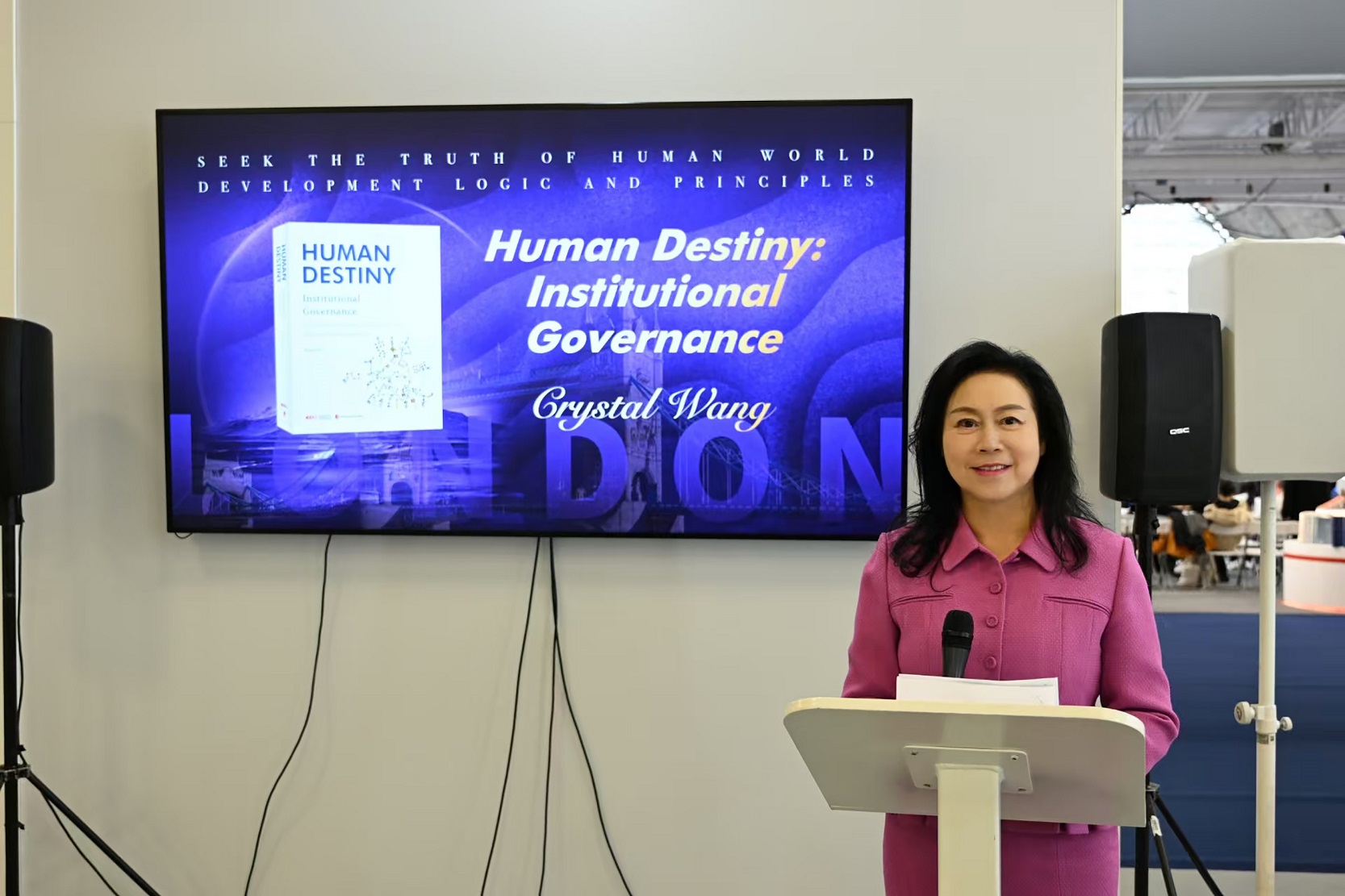 王晶的著作《人类命运:制度治理》英文版在伦敦书展上面向全球发布。