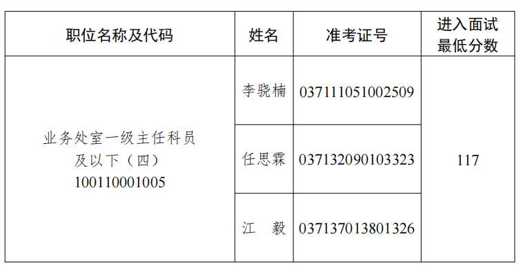因有部分考生放弃面试资格,根据公务员考试录用工作有关规定,按照笔试成绩从高到低的顺序,递补以下考生参加全国政协办公厅2026年度考试录用公务员面试(按准考证号排序):