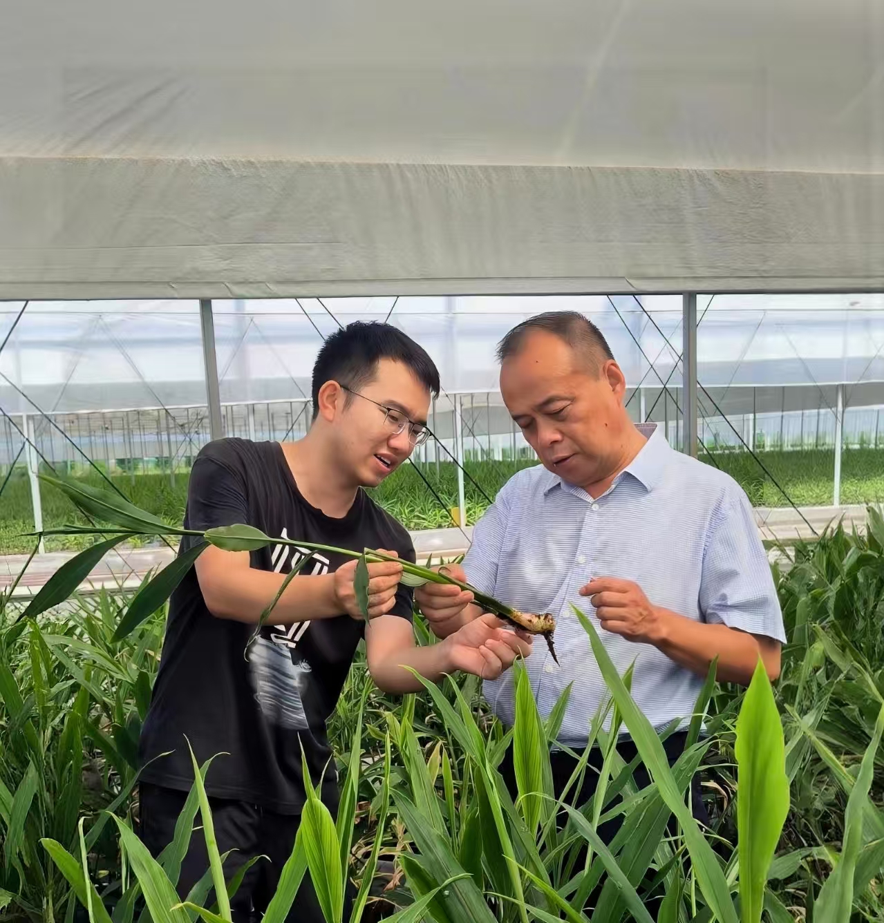 2025年7月,熊皓(右)在南昌市进贤县智慧农业产业园实地考察了智慧大棚农作物种植情况。