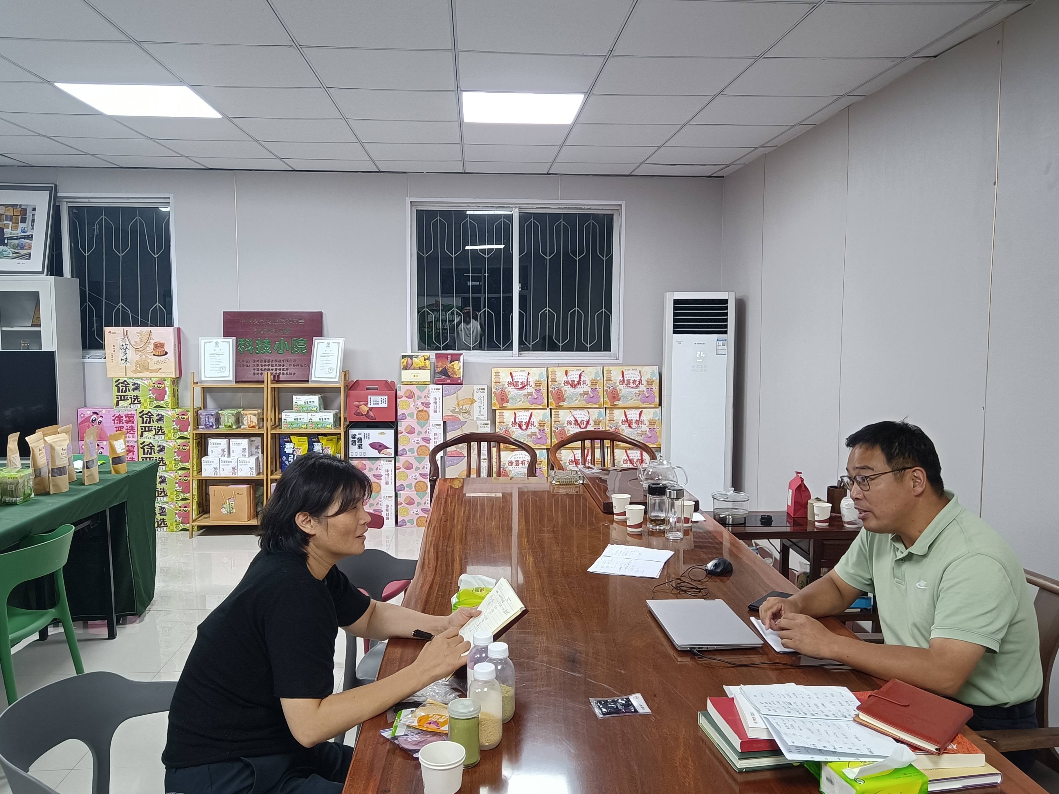 邱轶良(左)到贾汪区江庄镇高村了解徐州薯业种植规模、加工技术、市场销售、产业链延伸及政策支持等情况。(图片由受访者提供)