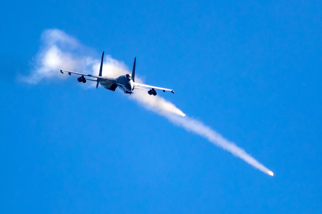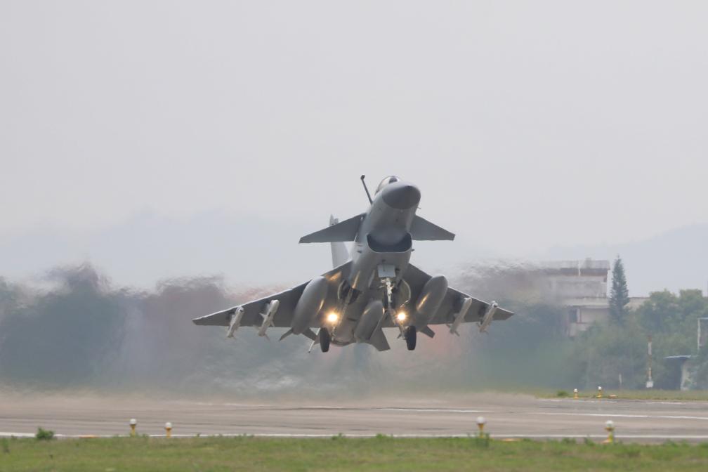 2023年4月8日,东部战区圆满完成环台岛战备警巡和“联合利剑”演习。这是歼击机挂弹起飞。新华社发(王紫箫 摄)