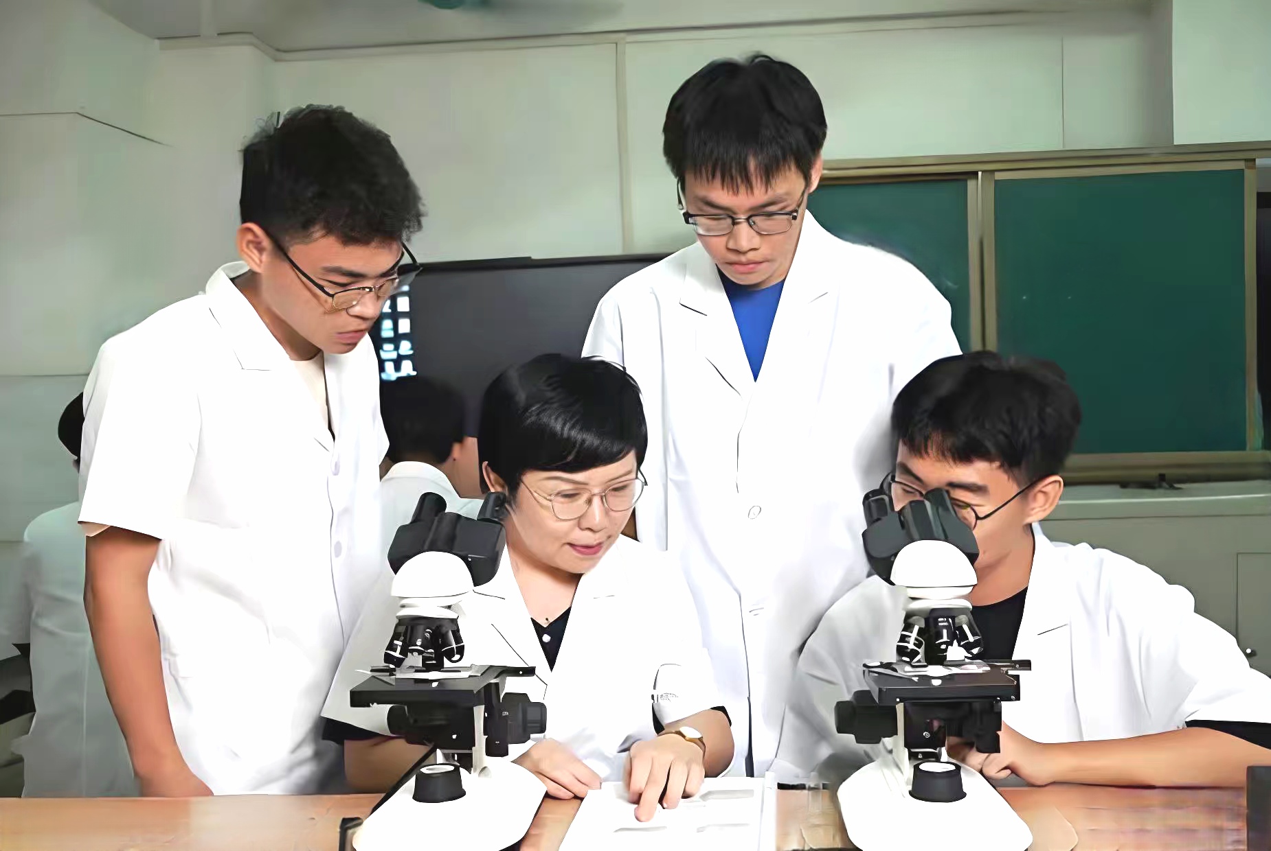 学校至今珍藏一面2021级临床医学专业全体学生赠送的锦旗。当年,于海英担任该班生物化学课程教师,在教学中大胆创新,将临床真实的化验单、诊疗单引入课堂,用真实病例引导学生学习。她带着学生对比三组关键数据,“入院时的初始数据”“治疗中的动态数据”“出院时的康复数据”,让学生们直观理解疾病的发展过程、治疗进展与疗效变化,把抽象的生物化学知识与临床实践紧密结合。后来,这批学生进入条件艰苦的基层医院实习,正是凭借她传授的方法,快速独立上手、得心应手。