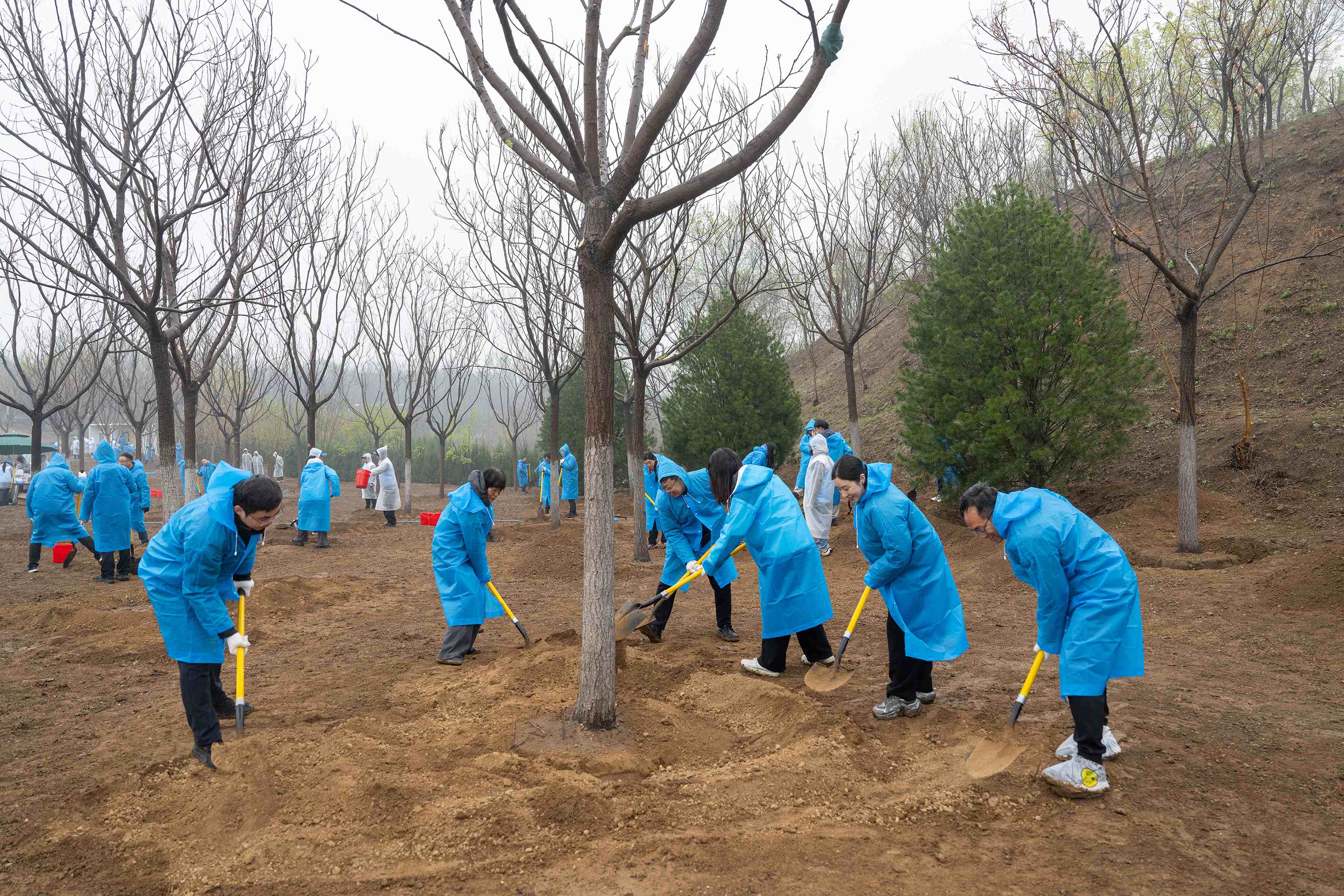 四月九日,全国政协机关在北京市房山区青龙湖森林公园开展以“履行植树义务、共建花园城市”为主题的义务植树活动。 王达 摄