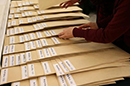 参加全国政协十二届二次会议采访报道的记者领取证件